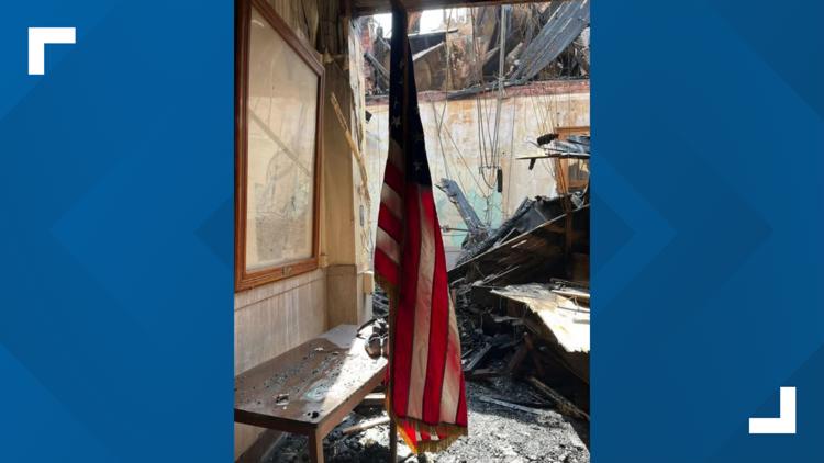 Photos from inside historic Floyd County Courthouse show devastating damage – and also a US flag still standing