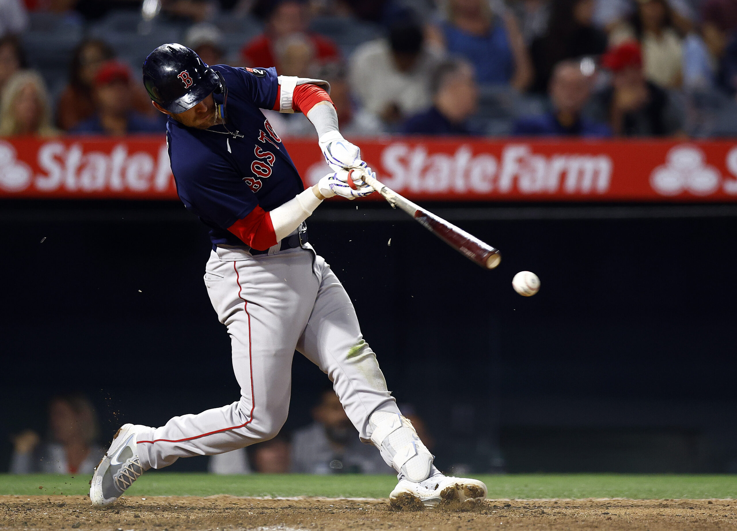 Getty ANAHEIM, CALIFORNIA – JUNE 07: Trevor Story #10 of the Boston Red Sox hits a RBI single against the Los Angeles Angels in the seventh inning at Angel Stadium of Anaheim on June 07, 2022 in Anaheim, California. (Photo by Ronald Martinez/Getty Images)